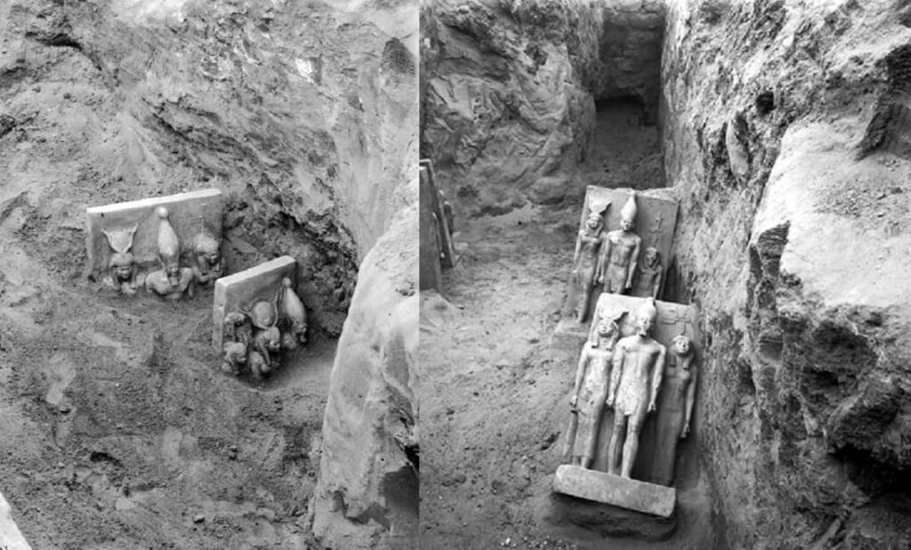 In 1908, George Reisner discovered eight “triads” depicting Pharaoh Menkaure, the goddess Hathor, and several provinces of Ancient Egypt.