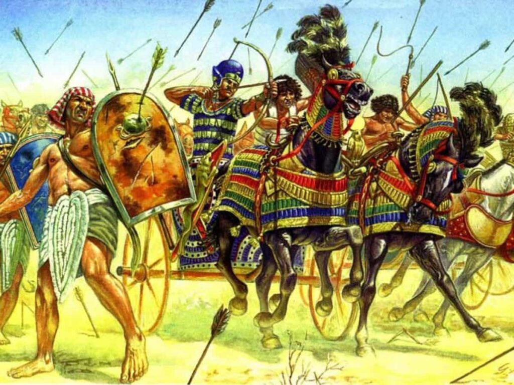 The Battle of Kadesh faced the armies of Ramses II of Egypt and Muwatalli II, king of the Hittite Empire,